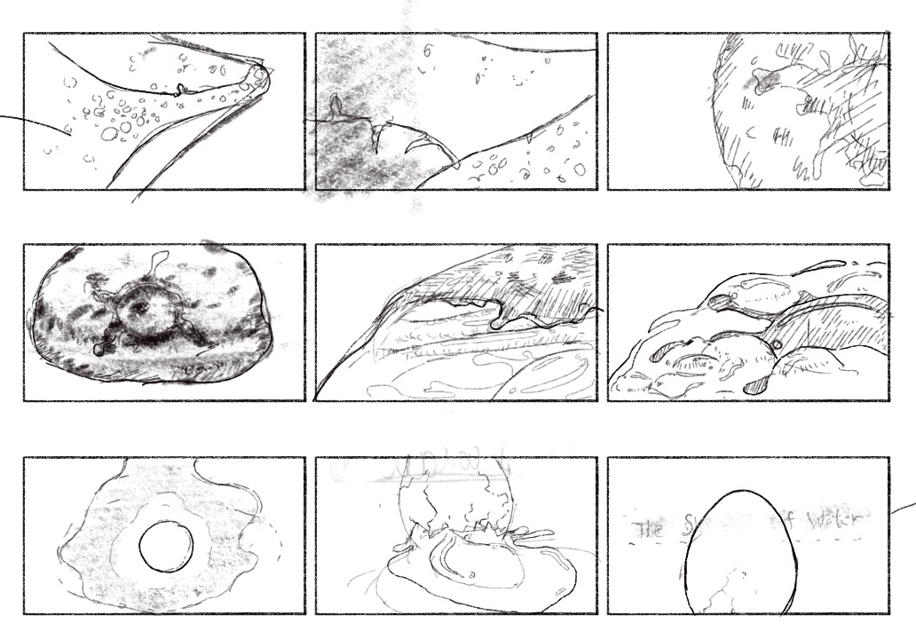 This is a styleframe design for the title sequence of the movie 'The Shape of Water,' a surrealistic love story about Eliza and an amphibian creature that gives her a feeling of acceptance. By showcasing the textural variety of the egg, I aimed to convey that every form of love should be respected.